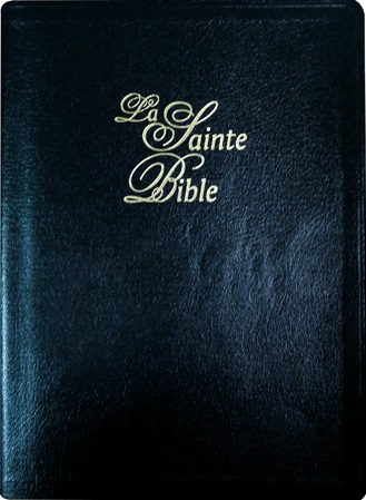 Bible Louis Segond 1910 avec couverture en simili cuir noir, tranche or, onglets, et marque-pages.