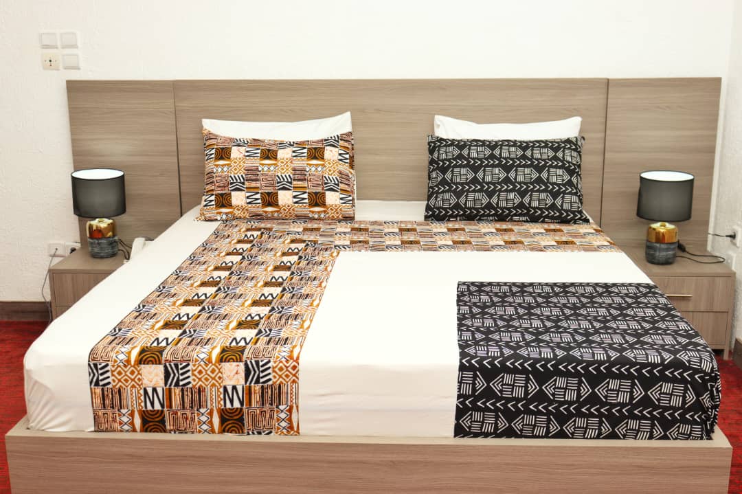 Le produit “Draps 3places + 4 taies” est un ensemble de literie de qualité supérieure fabriqué à partir de tissus de coton et de tissus wax de haute qualité pour offrir un confort et une douceur exceptionnels tout au long de la nuit.