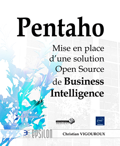 Ce livre sur Pentaho s’adresse à tout informaticien désireux de mettre en place les principales briques de ce puissant outil de Business Intelligence Open Source. Pour chaque brique de la suite Pentaho détaillée dans le livre (en version 3.6 au moment de l’écriture), une procédure d’installation est décrite en détail. L’auteur propose ensuite une présentation détaillée puis une étude de cas avec de nombreux exemples concrets. Plutôt qu’une étude exhaustive des multiples composants faisant partie de la suite Pentaho, l’option retenue est de mettre l’accent sur les modules principaux en privilégiant une approche par l’exemple.